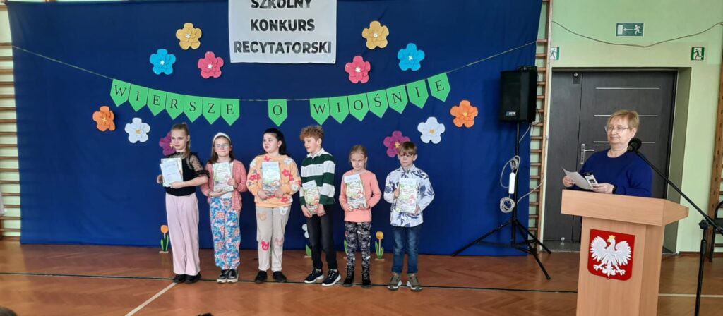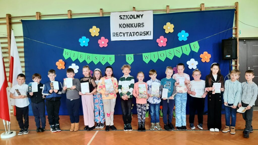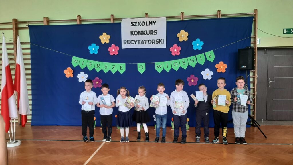 Słońce już ogrzewa swoim blaskiem świat za oknem, trawa cieszy nasze oczy soczystą zielenią i wielobarwnym kwieciem. Kosy, sikorki i skowronki niosą radosną pieśń… To już wiosna! Ta najbardziej radosna pora roku zawitała też w naszej szkole – 21 marca odbył się VIII Szkolny Konkurs Recytatorski pt. „Wiersze o wiośnie”. Uczniowie klas I-III pięknie deklamowali poezje o wiośnie. Oto zwycięzcy i wyróżnieni z poszczególnych klas: