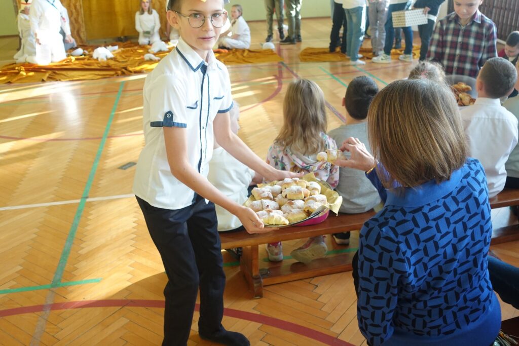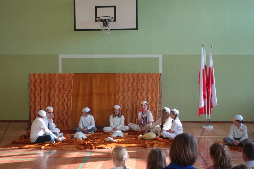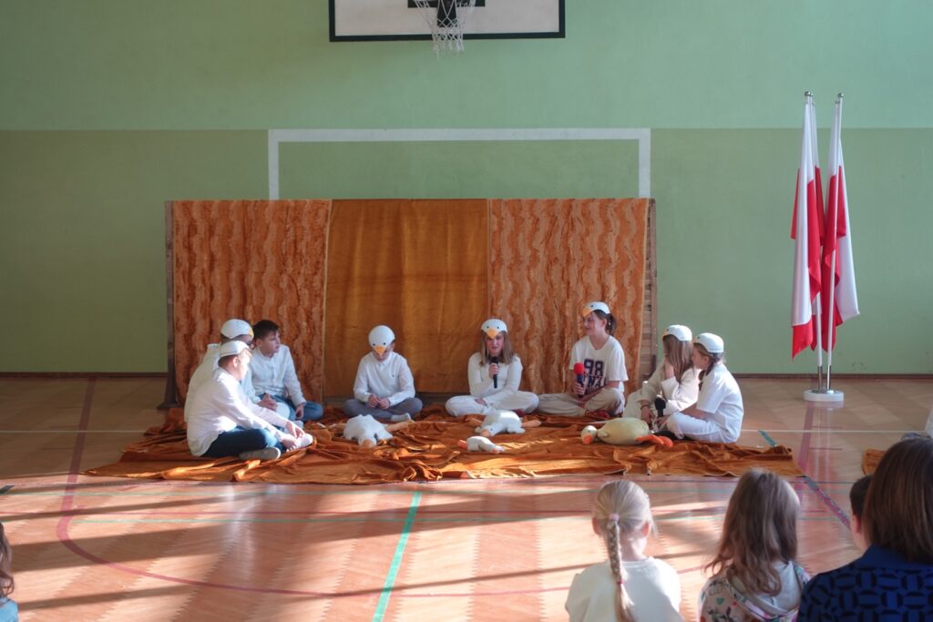 12 listopada w naszej szkole odbył się apel , który przedstawił historię o tym, jak Marcin, jako żołnierz, podzielił swój płaszcz z żebrakiem, który później okazał się być przebranym Chrystusem. Podkreśl symbolikę tej opowieści – hojność i gotowość do pomocy potrzebującym.