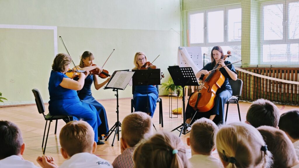 W dniu dzisiejszym progi naszej szkoły wypełniły się dźwiękami najwyższej próby. Mieliśmy niezwykłą przyjemność gościć kwartet muzyczny Con Amore, który zabrał nas w niezapomnianą podróż przez świat dźwięków. Program koncertu był niezwykle bogaty i różnorodny.